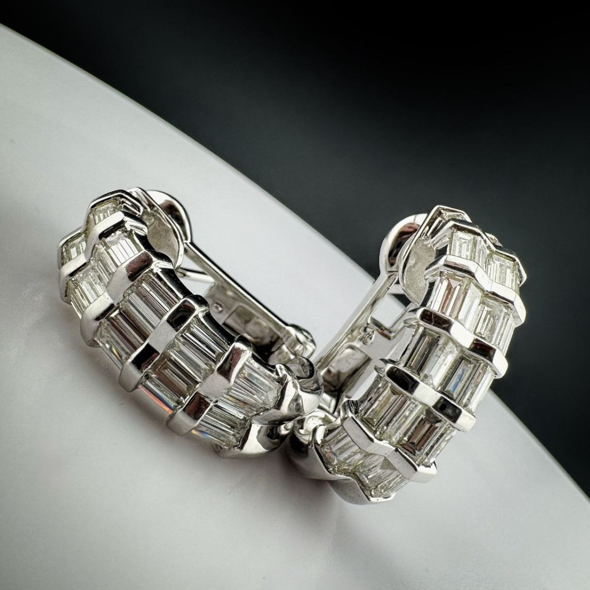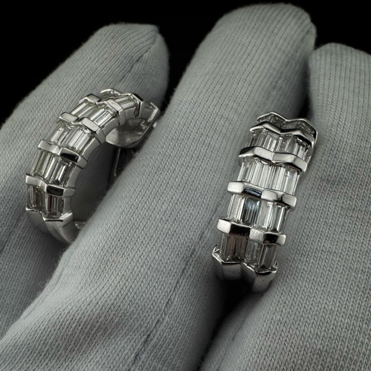 Серьги выполнены из белого золота 750 пробы